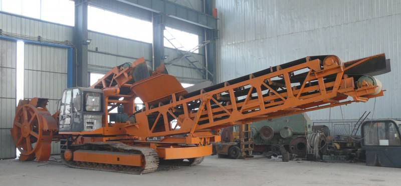1.大型履帶移動堆取料機可用于礦山碎石料、沙土以及糧食等裝車操作,采用自身發(fā)動機帶動的液壓螺旋系統(tǒng)進料,利用大小皮帶將料裝車,大小皮帶的伸縮旋轉(zhuǎn)也通過液壓系統(tǒng)控制,同時可控制履帶自行行走,無需外部電源,移動靈活,作業(yè)面積大、效率高;